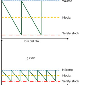 Adicionalmente, los viajes rutinarios convierten al sistema en una forma cada vez más aplicable en entrega de material desde los supermercados (centros de distribución, almacenes o bodegas) hasta el montaje. También debemos considerar que las líneas pueden utilizar pequeños trenes (mizusumashi), debido a que proporcionan material en lotes pequeños y en altas frecuencias, y se obtendrá la misma producción (KNEZ1 & GAJŠEK1, 2015).